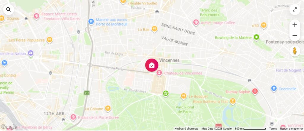Prime Location: Located in the heart of Vincennes, close to the castle and the Bois de Vincennes. Ideal location to visit the tourist hot spots of Paris. (Marais) at 10 minutes (metro) from Musée du Louvre at 12 minutes (metro 1) or 5 min, rapid train (RER A).